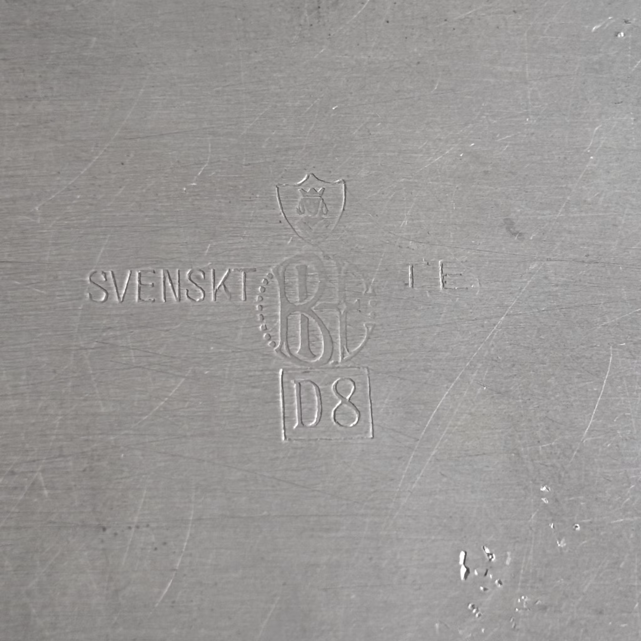 Tillverkad av Edlunds Silverfabrik AB (stämplad BHE) som var en ansedd stockholmsbaserad silver- och tenn fabrik verksam under stora delar av 1900-talet, särskilt känd för sin produktion av högkvalitativa föremål i Art Deco-stil under 1920- och 1930-talen. De agerade ofta tillverkare åt kända formgivare och företag som Svenskt Tenn.