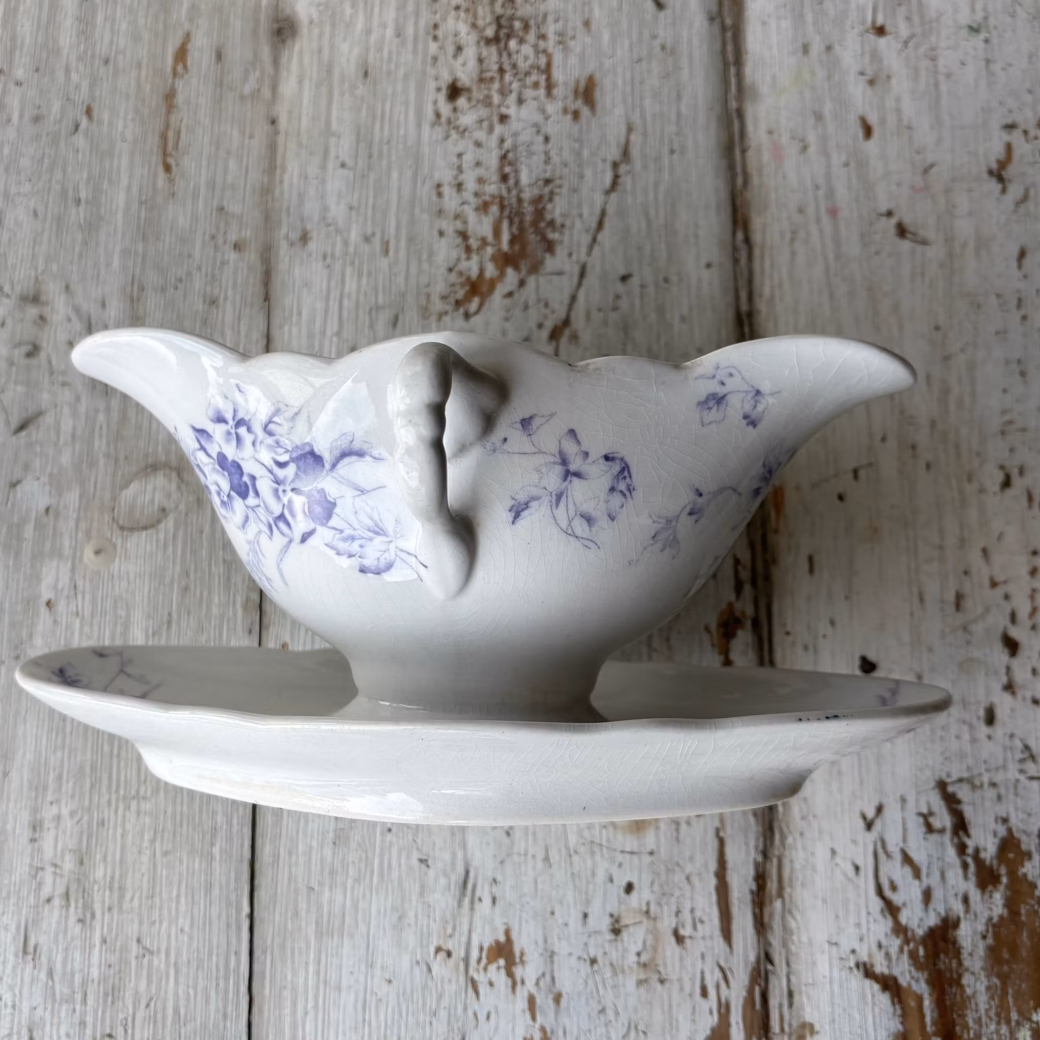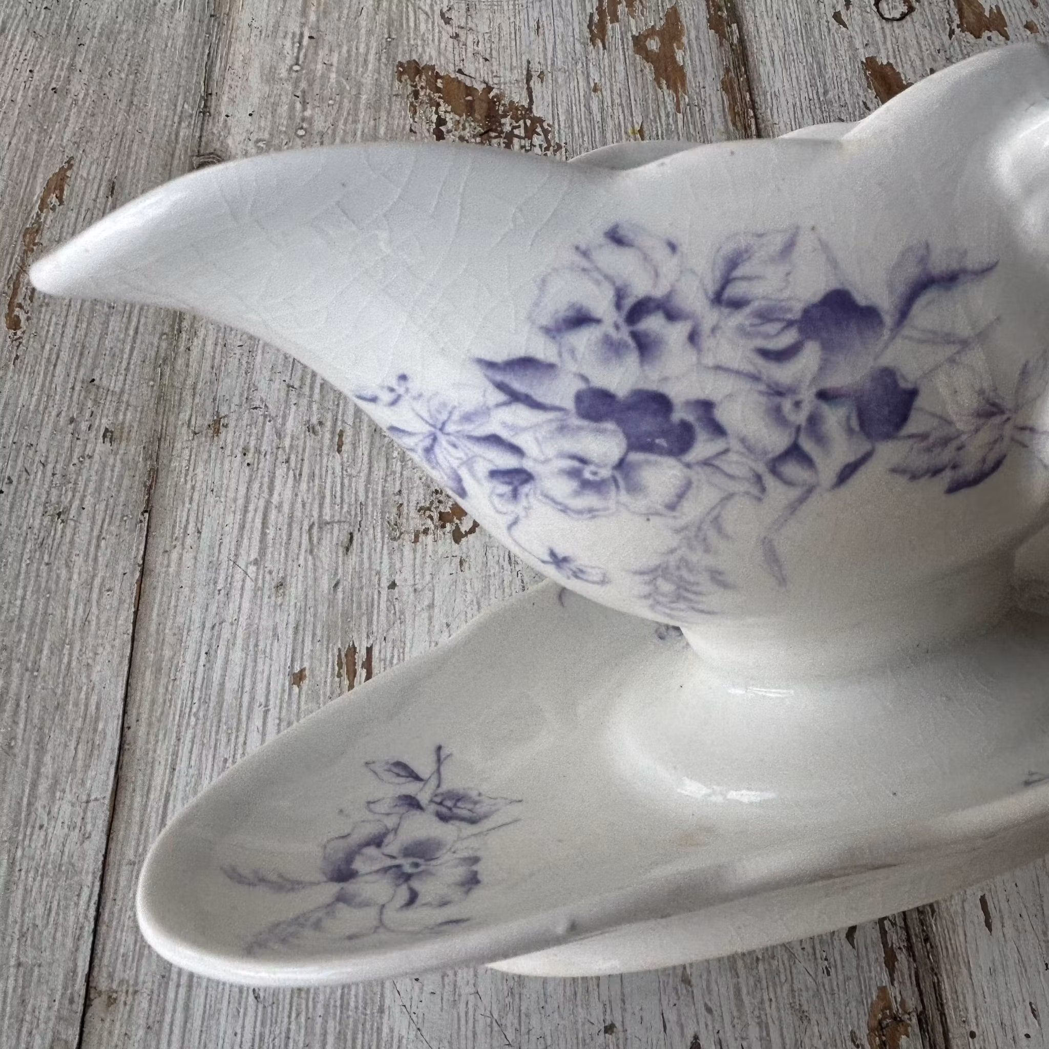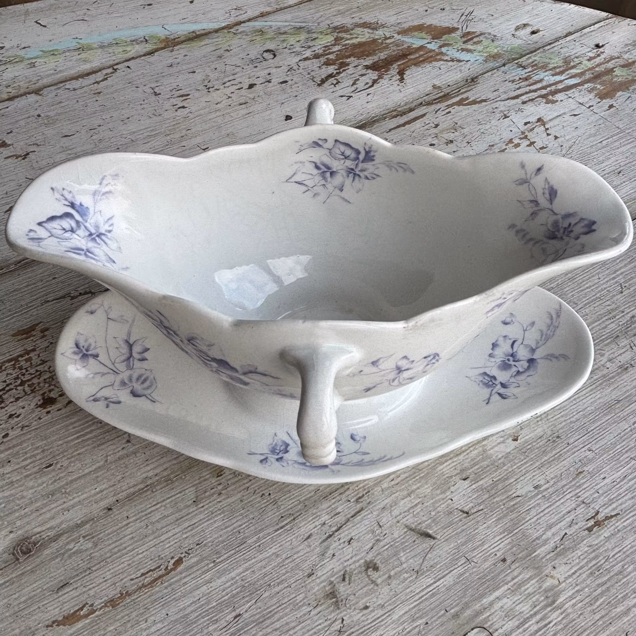 Såssnipa i väldigt fint skick för sina 100 år. Tillhör serien blå Pense för Rörstrand, formgiven av Alf Wallander. Framstående formgivare, konstnär och grafiker, 1962-1914. Oval form i vitt porslin med vackert mönster av blå penseer. En riktig pärla som du kan duka upp till finmiddag eller sätta ett par vårblommor i. Vilket som är lika härligt. Finns även en riktigt fin soppterrin i samma serie, se annan produkt.