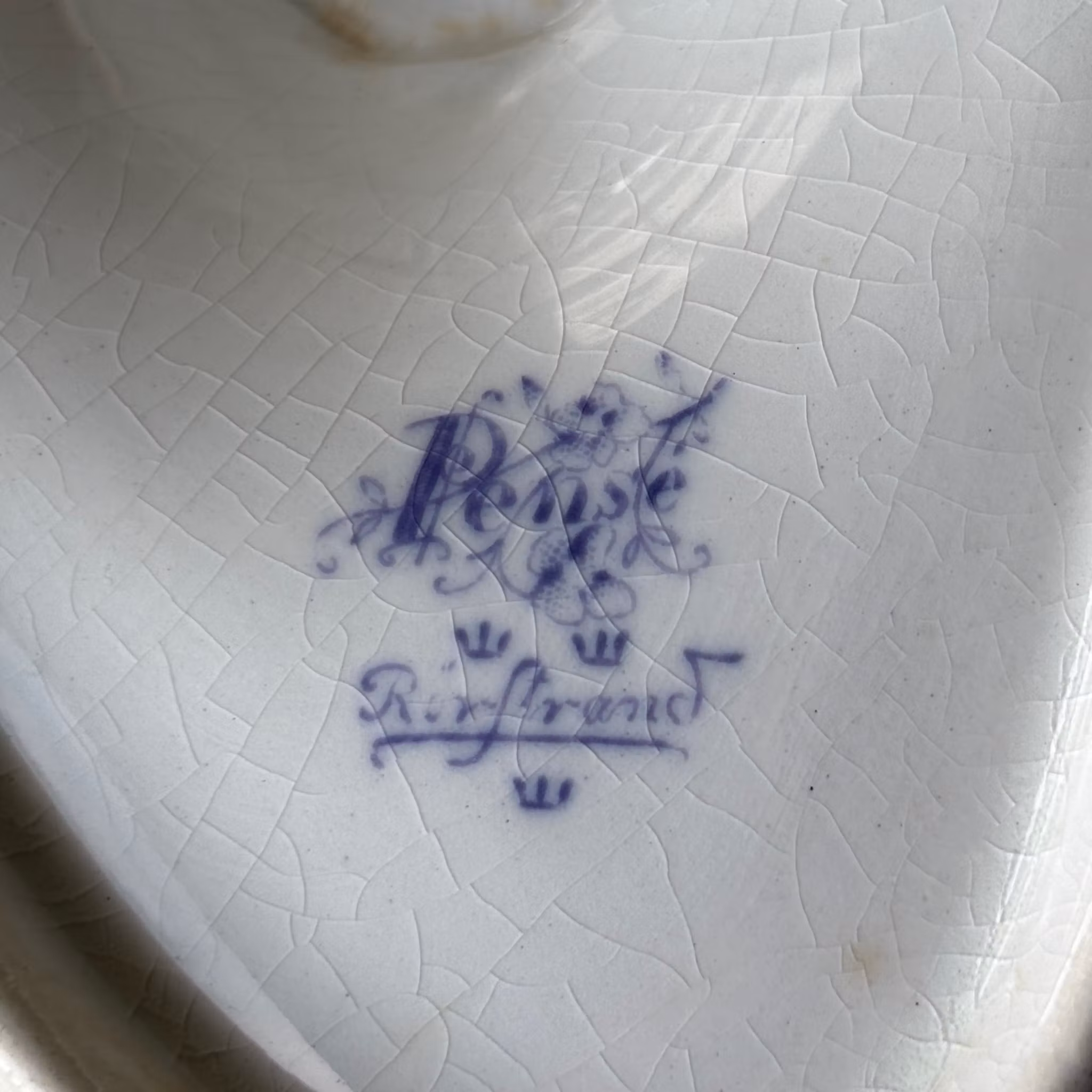 Såssnipa i väldigt fint skick för sina 100 år. Tillhör serien blå Pense för Rörstrand, formgiven av Alf Wallander. Framstående formgivare, konstnär och grafiker