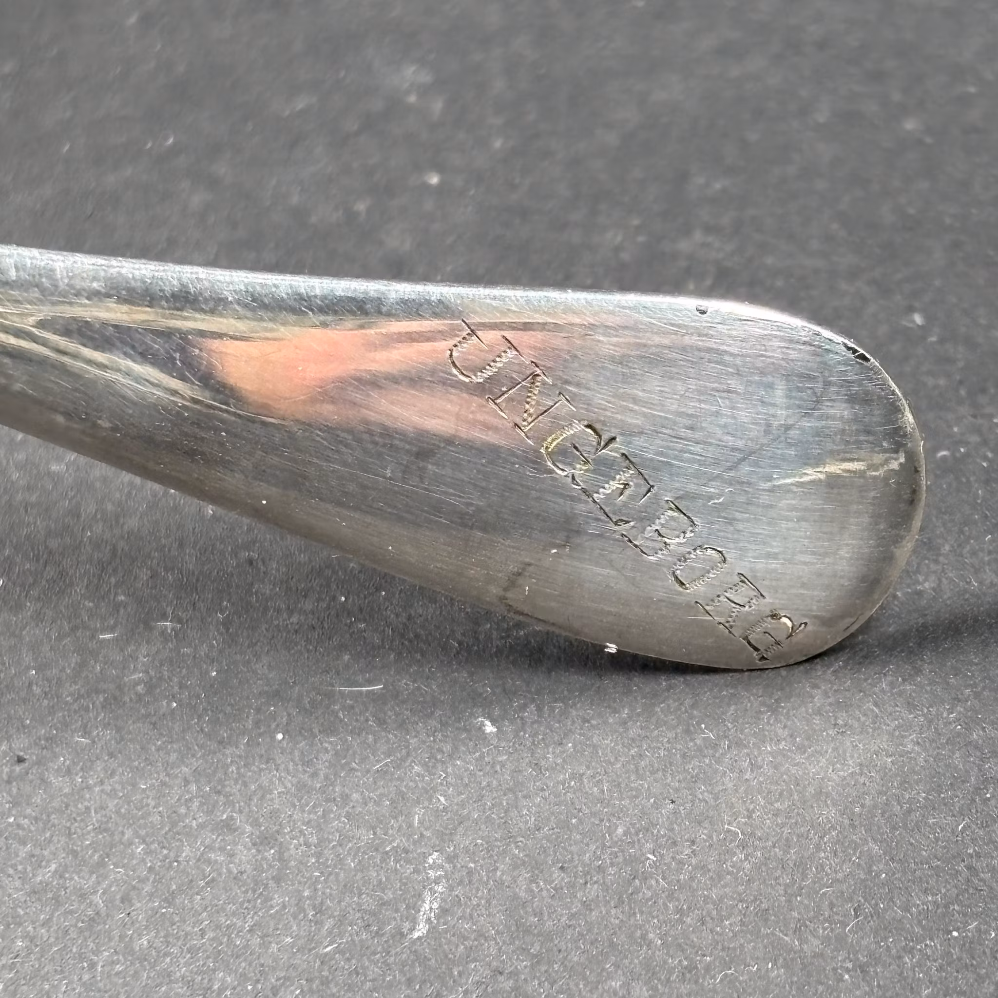 En väldigt smart och vackert dekorerad tesil på ställning med handtag. När du vickar på den kan du doppa den i koppen och sen vrida upp den och ställa den på bordet utan dropp. Tesilen är i nysilver, vintage och har Ingeborg inristat på undersidan av handtaget. En underbar present tillsammans med en vacker burk te.