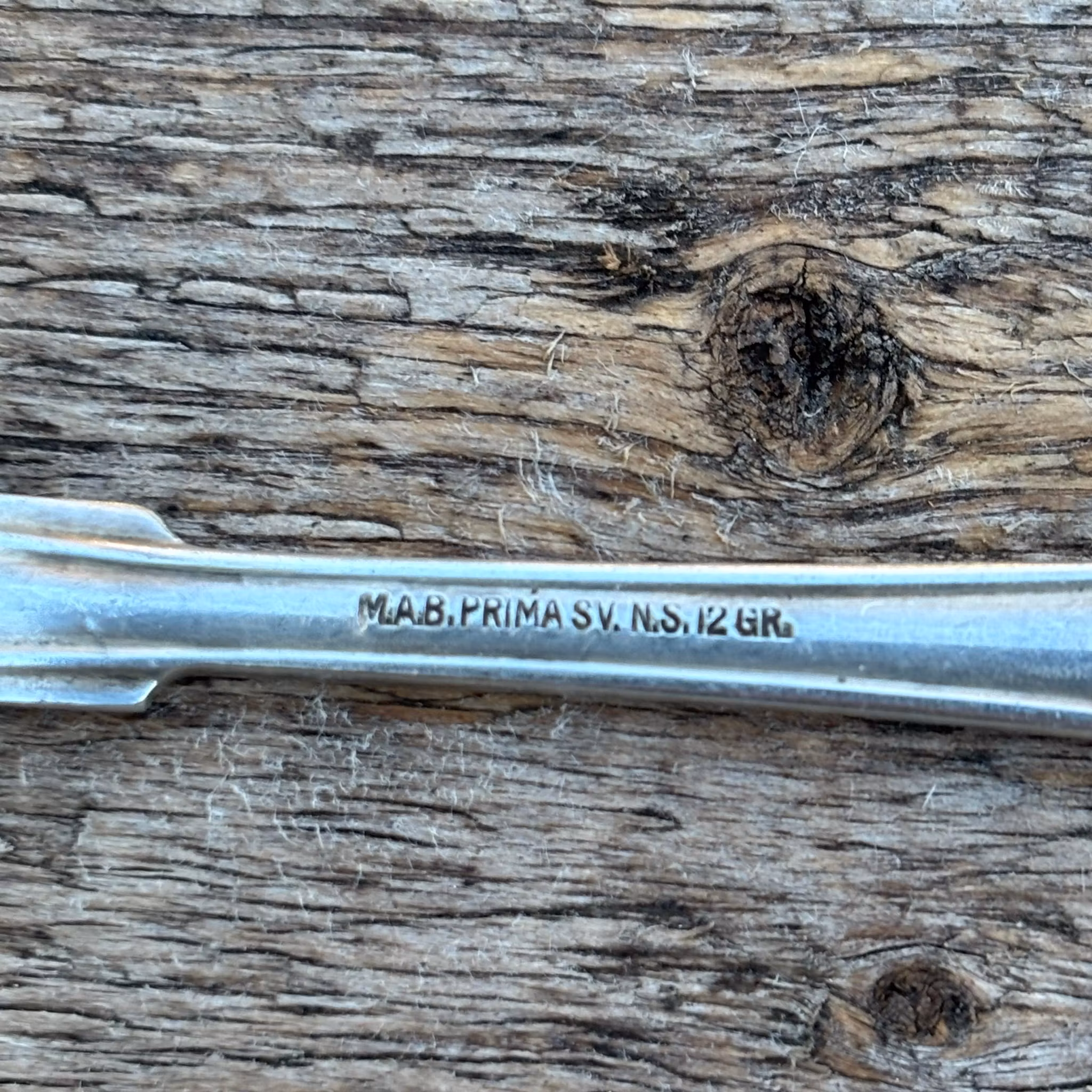 En fin liten detalj till tårtkalas, buffebord eller kakfatet. Den här tårtspaden i nysilver gör sig fint i sin enkelhet med dekoration av rosett och krans. Märkt MAB prima sv. ns. Skicket är normalt sliten för att vara vintage.