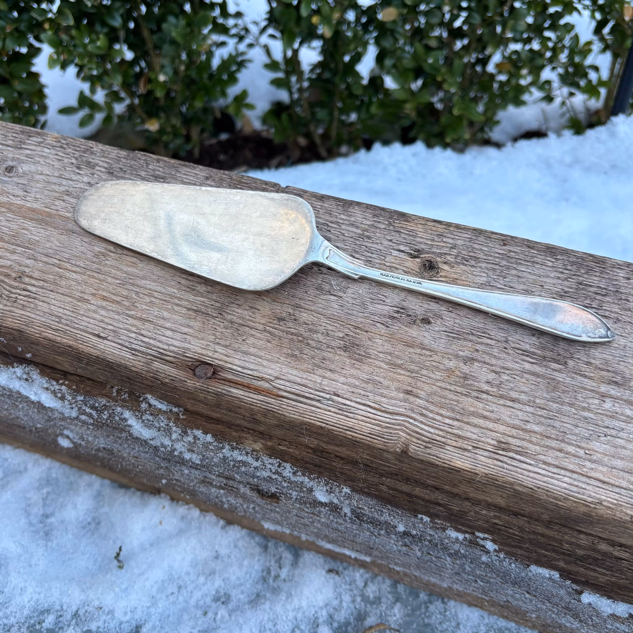 Tårtspade dekorerad med en fin rosett och krans - nysilver - vintage