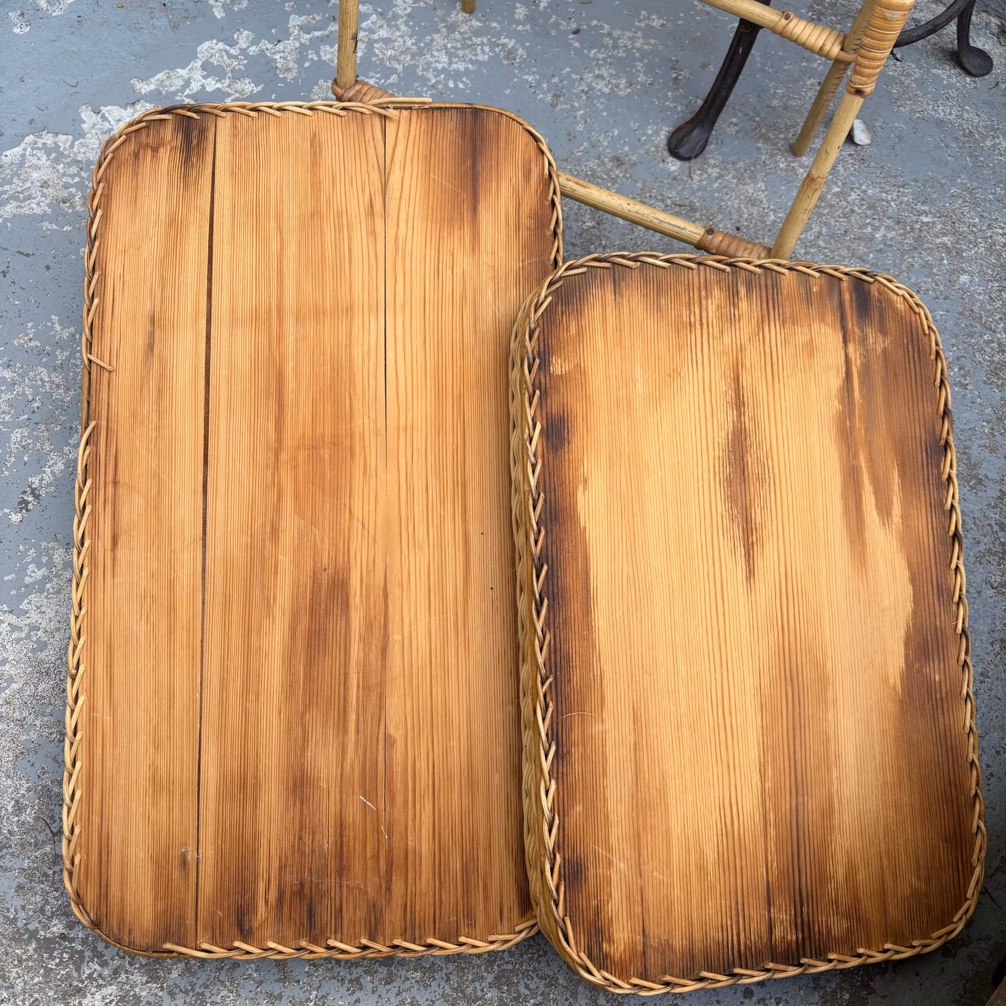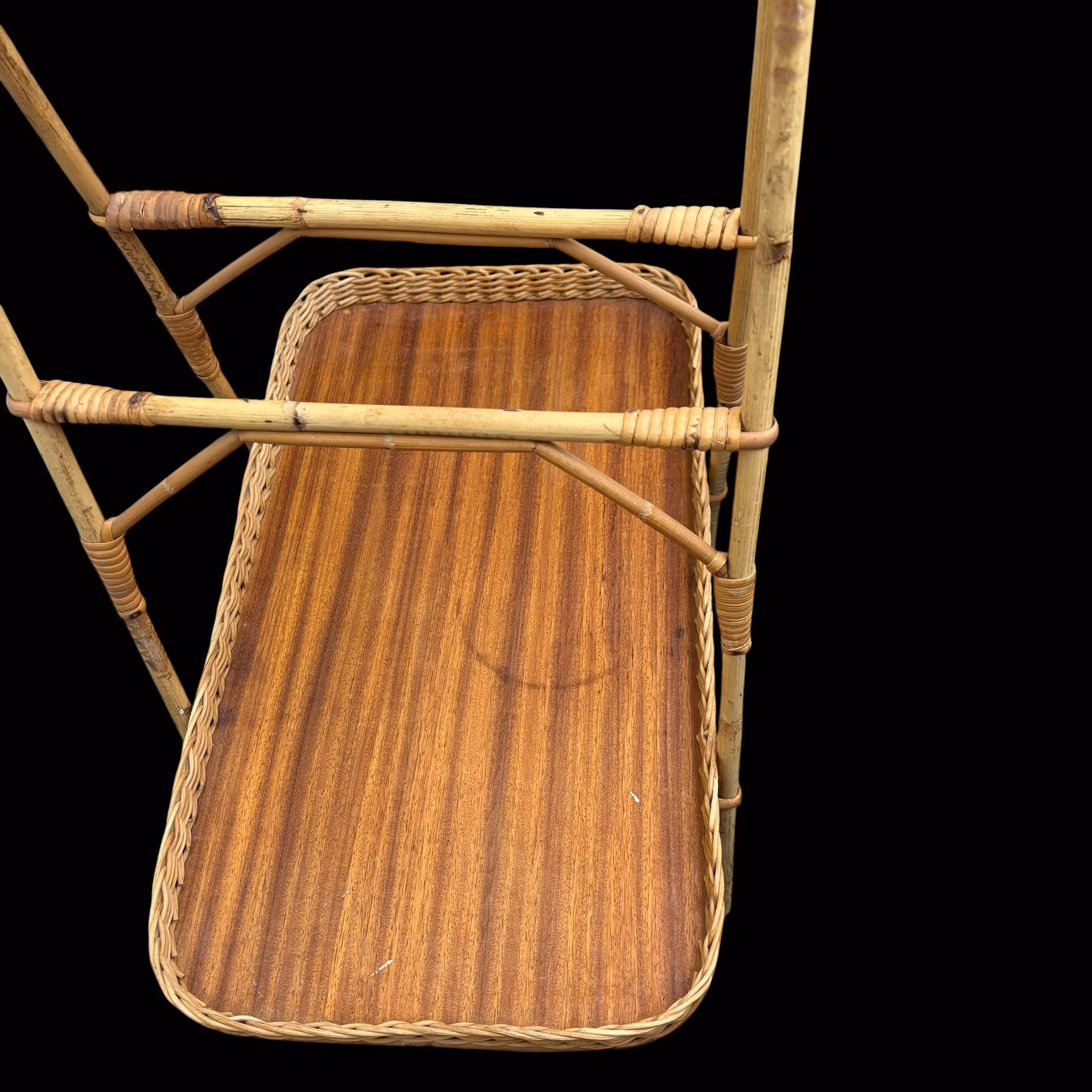 Brickbord i två plan i rotting & bambu - vintage
