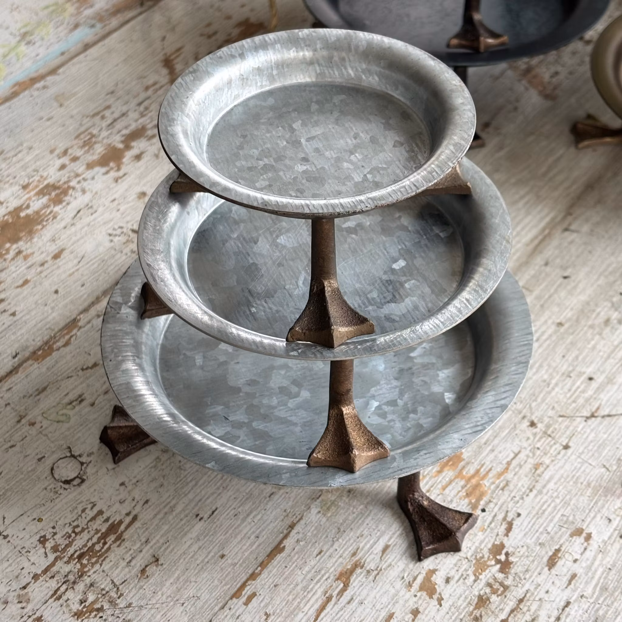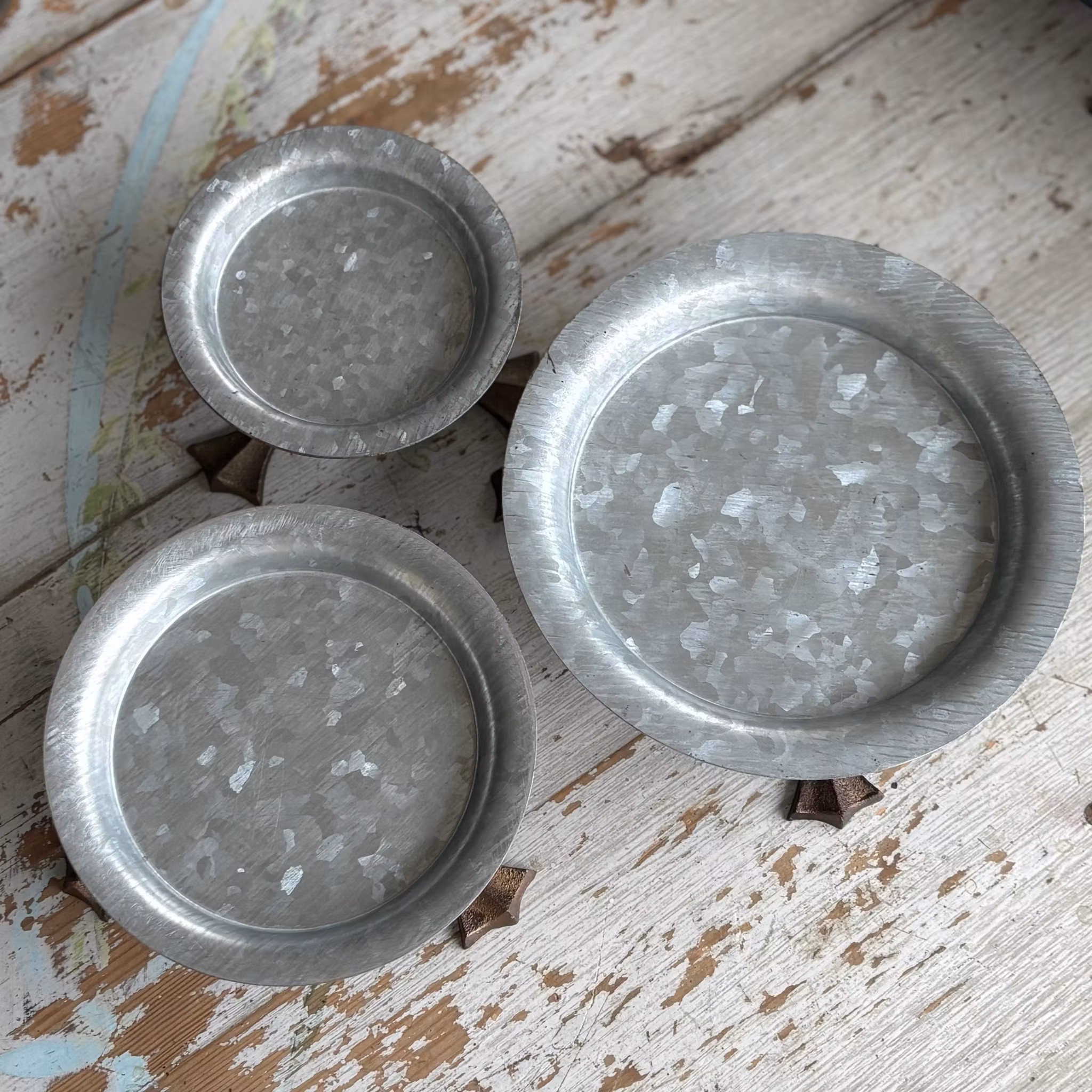 Bedårande fat i zink och tre kalle anka fötter i guld. Dessa fat vill jag ha överallt!!! Använder dem lika väl till krukan som till blockljuset eller några fina