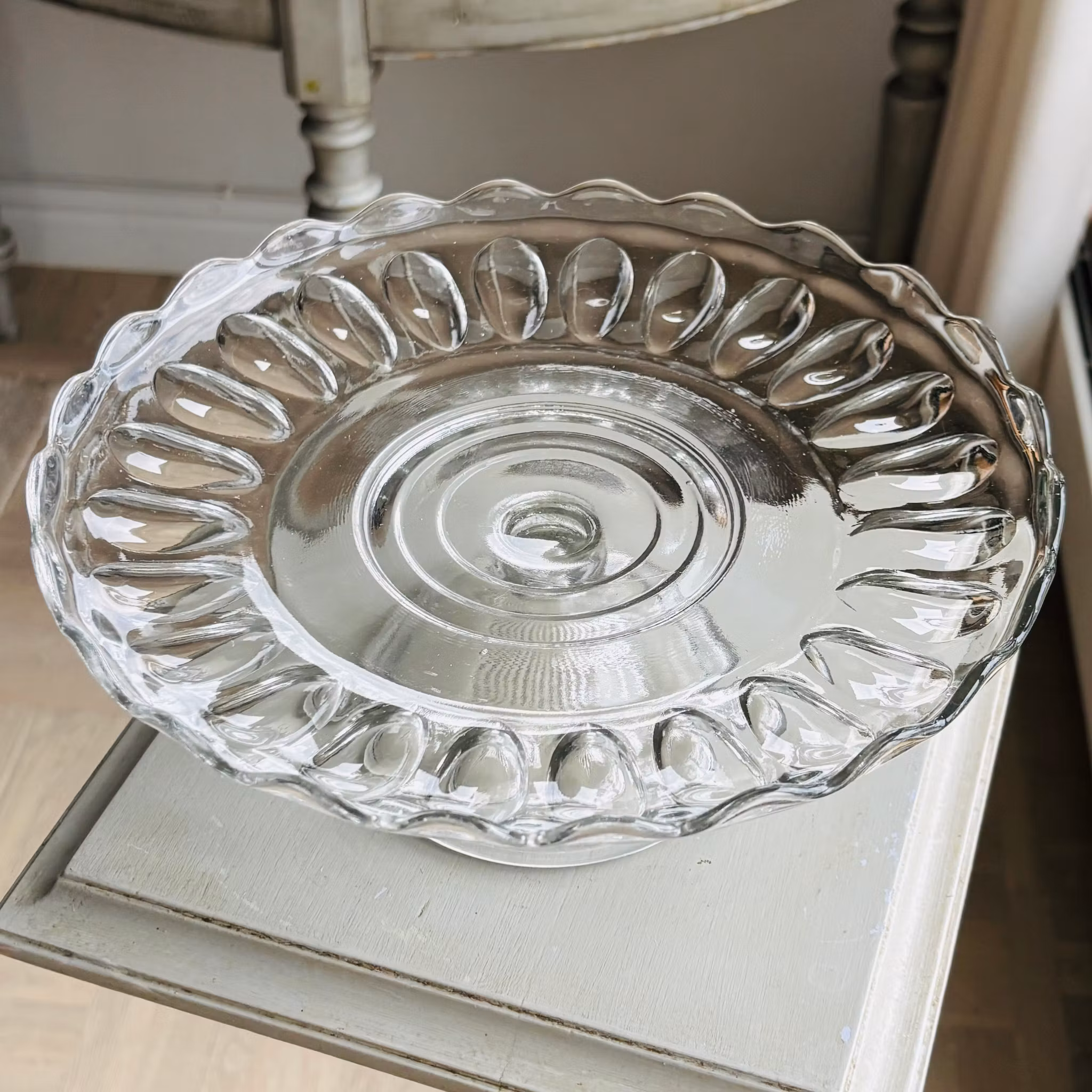 Fat på fot - tårtfat i glas med enkel dekor - Vintage