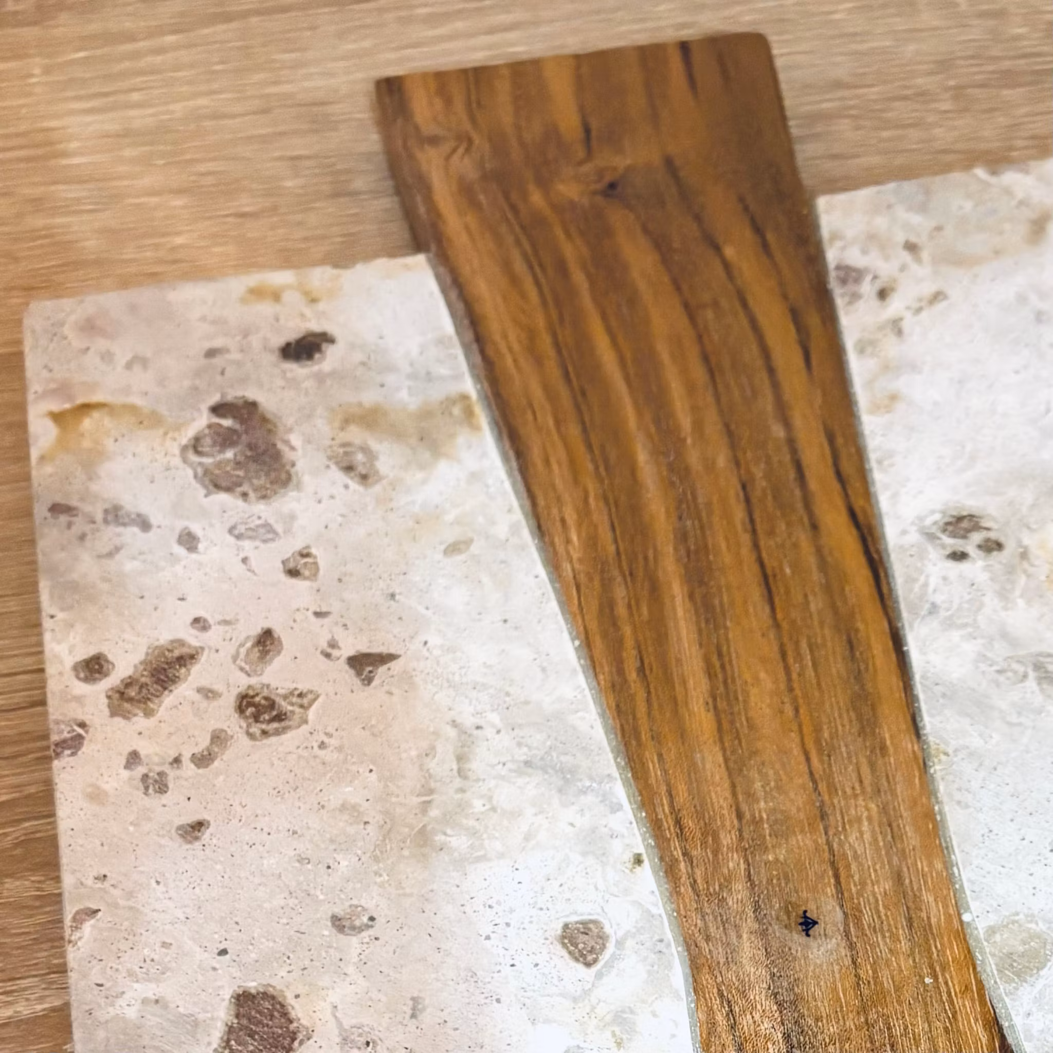 Skärbräda Bricka i beige marmor och akacia trä - Affari of Sweden