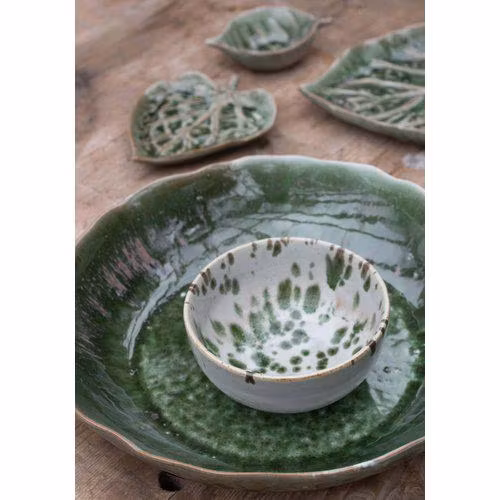 Skål keramik offwhite och grönmelerad - 13x6cm - Wikholm Form
