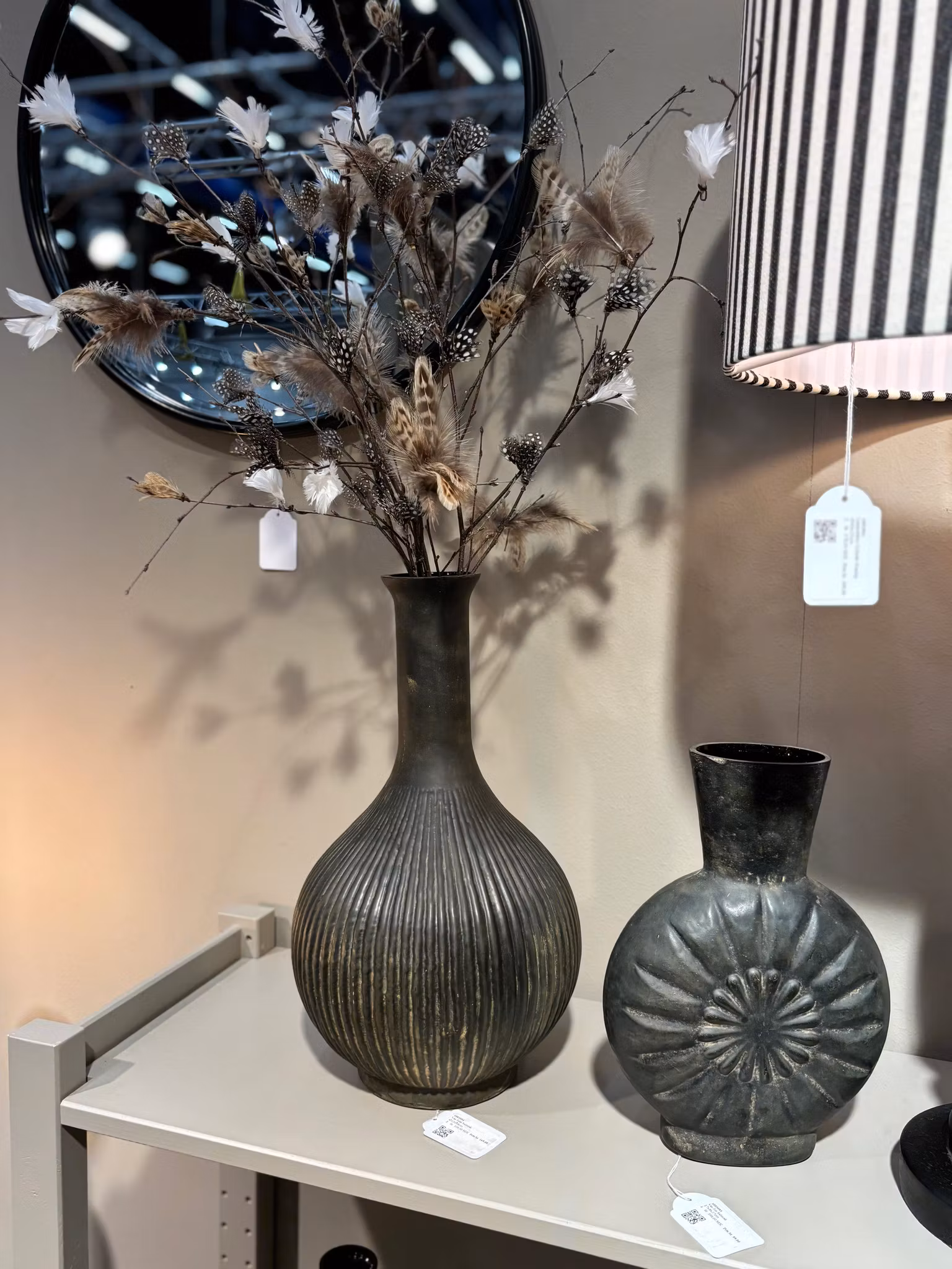 Olika magiska vaser i, för mig, ett nytt spännande utseende i tyngre svart blankt glas på insidan och en matt salmiakfärgad utsida. Du hittar fyra olika fantastiska former på dessa och du kan lätt kombinera dem hur du vill och sätta både levande och torkade växter i dem. Njut dem på bordet, i fönstret eller på piedestalen.