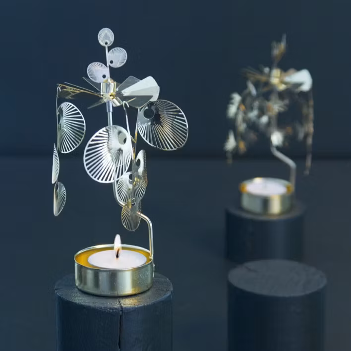 Dessa små guldklimpar är den perfekta presenten både till dig, familjen och dina vänner. Ett änglaspel som drivs av värmen från det lilla värmeljuset och gör at