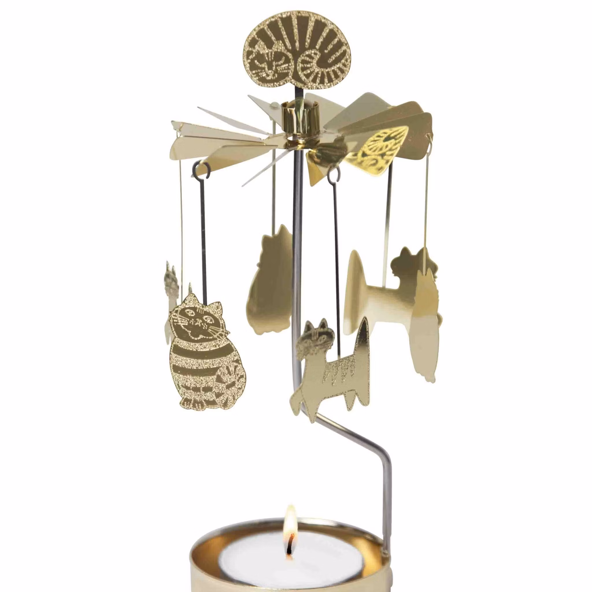 Dessa små guldklimpar är den perfekta presenten både till dig, familjen och dina vänner. Ett änglaspel som drivs av värmen från det lilla värmeljuset och gör att de söta figurerna snurrar. Just nu finns det möjlighet att välja en med Lisa Larsons katter och två olika från Stig Lindbergs mönster som ett exklusivt samarbete. Dessutom kan du välja en med söta hundar och en med stilrena solfjädrar. Alla kommer i guldfärgad metall. För att göra det ännu roligare får du dem paketerade i vackra presentförpackningar. Placera en på fönsterbrädan, en på bordet eller i badrummet. En stilig och mysig dekorativ ljusstake som passar att tända alla årets mysstunder.