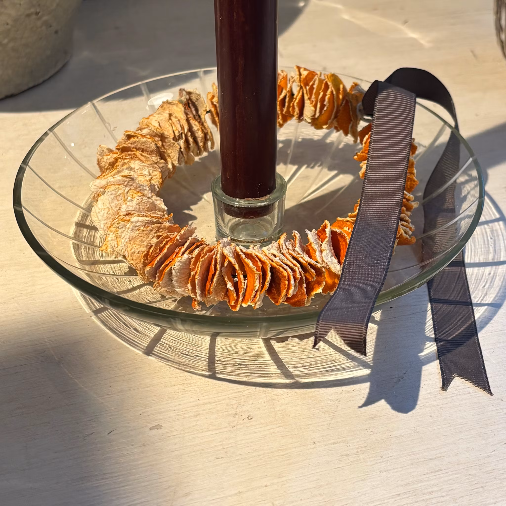 En stilren ljusstake i klarglas med etsade ränder. Passar normalstort blockljus. Blir fin både på bordet och i fönsterkarmen. Använd som den är eller lägg något litet fint för säsongen runt ljuset.