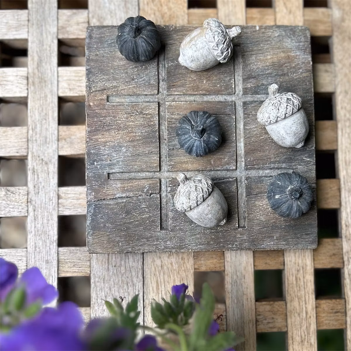 Spel tre i rad i praktisk komposit, vitlök/ekollon, Eldgarden